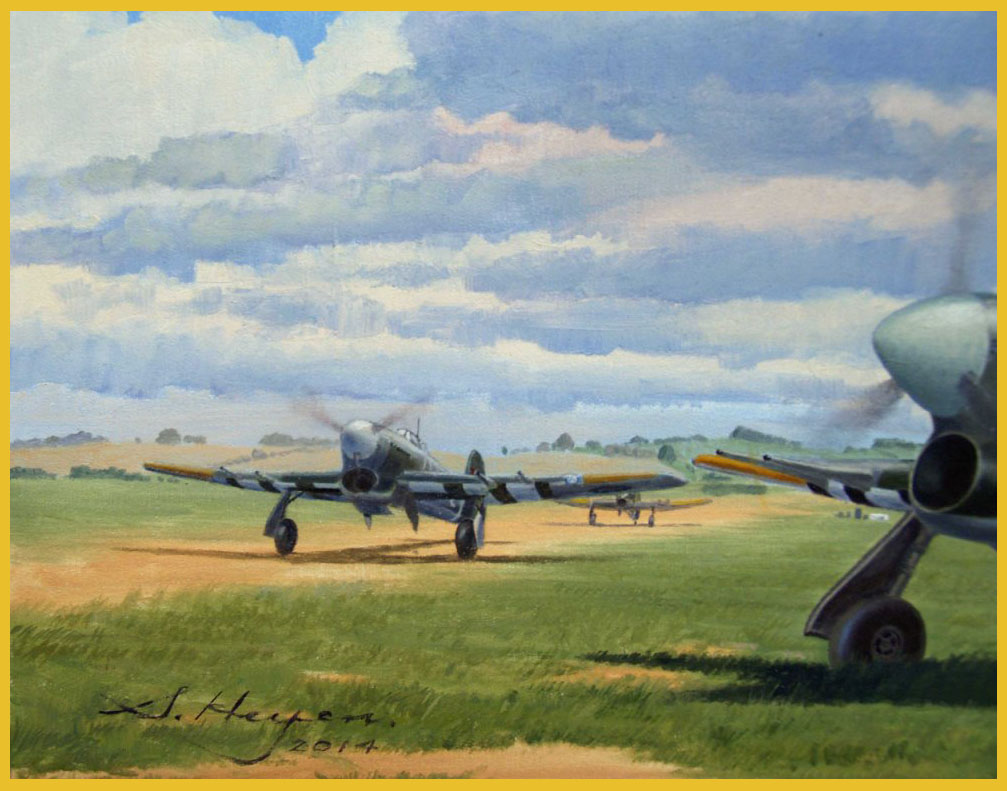 Squadron Leader FW Lefevre in his Hawker Typhoon Mk1B at Harrowbeer in early 1944.